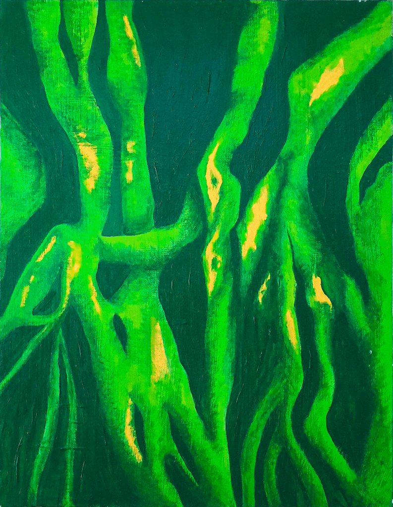 The paintings are a journey of growth and grounding, to understand each painting, please read more in the description under each painting.