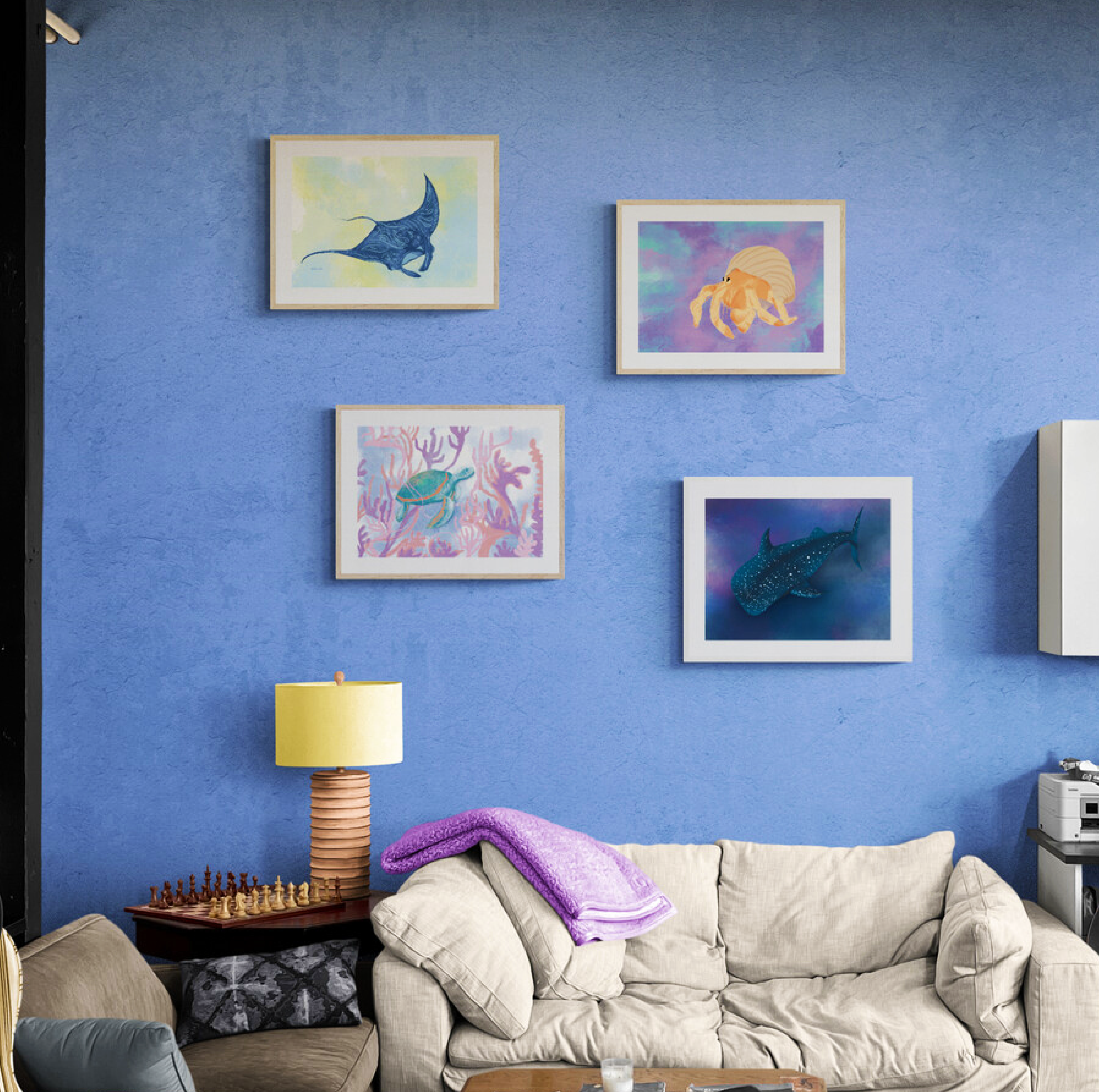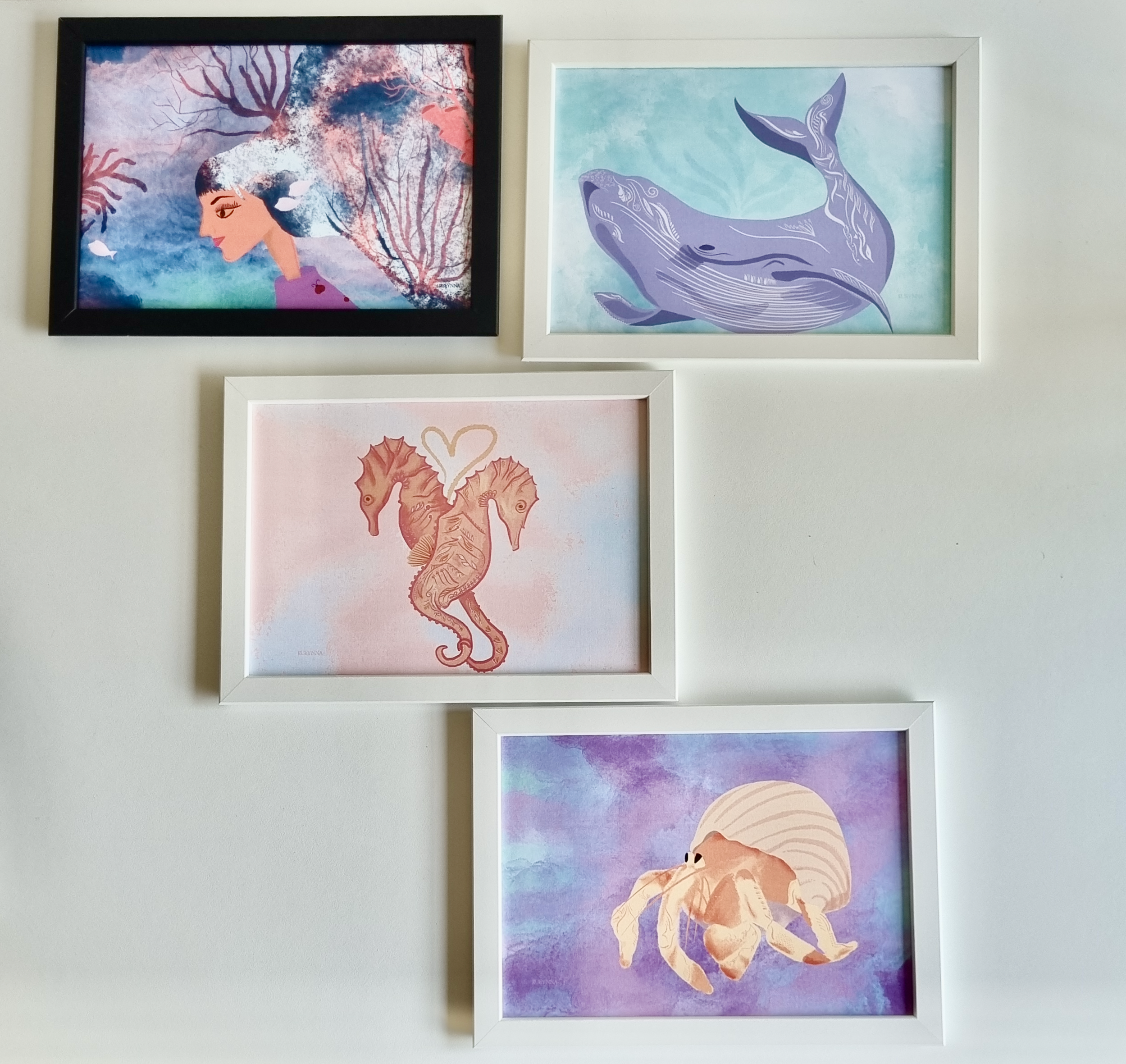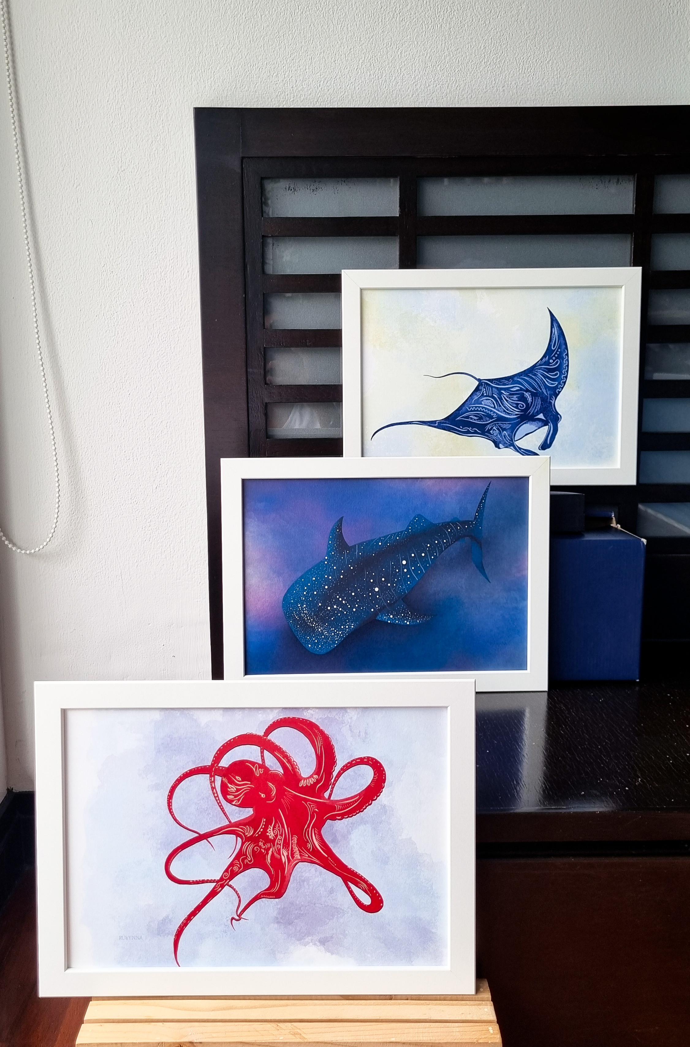 These are a few digital paintings of sea creatures that you can access instantly from ETSY and add to your walls. Digital download means you have the freedom to decide the size you want to print them and the frame you choose to decorate your walls with.